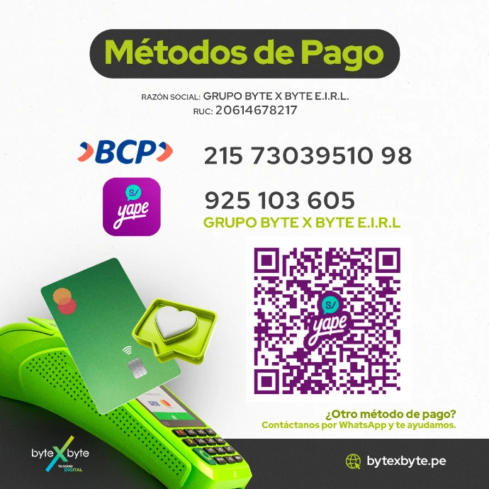 - Envía el comprobante al Whatsapp: 925103605.